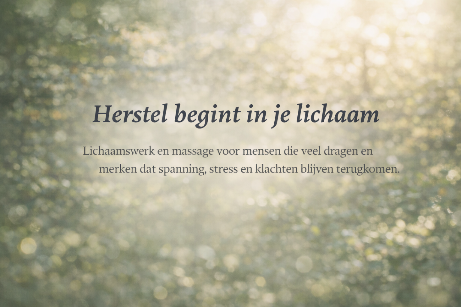 In 2017 kwam een opleiding massage op mijn pad, en dat opende een nieuwe wereld. Wat begon als werken met het lichaam, groeide uit tot een verdiepend pad van inzicht in spanning, gedrag en wat zich in het lichaam vastzet.